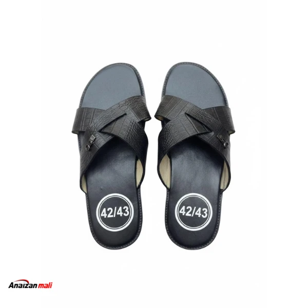 Alliez simplicité et raffinement avec ces mules à brides croisées de la collection Anaizan Mali. Ce modèle "slide" se distingue par son design intemporel à deux larges brides croisées qui assurent un maintien confortable du pied tout en laissant une grande liberté de mouvement. La finition texturée façon "peau de crocodile" noir profond (ou marron très foncé) apporte une touche de luxe discret. Le détail qui tue ? Un petit rivet métallique griffé apposé sur le côté, signature d'une finition soignée. La semelle noire ergonomique garantit un confort de marche optimal. Caractéristiques principales : - Design : Mules à enfiler avec brides croisées pour un style décontracté. - Matière : Aspect cuir texture reptile/crocodile de haute qualité. - Détail Signature : Petit rivet métallique décoratif sur la bride latérale. - Confort : Semelle intérieure noire, souple et résistante. - Praticité : Modèle sans entredoigt, s'enfile et s'enlève en une seconde. - Taille : Modèle présenté en taille 42/43 (disponible dans d'autres pointures). La paire idéale pour flâner avec élégance, que ce soit à la maison ou en extérieur. |