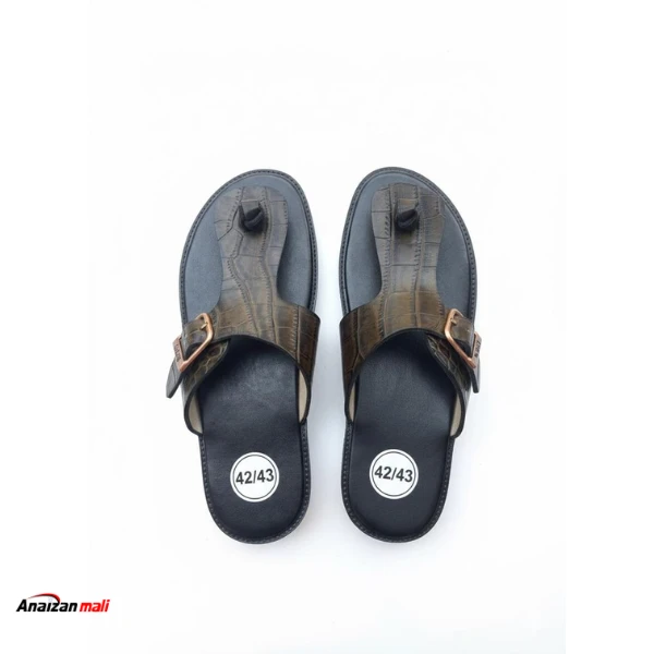 Optez pour une allure distinguée et authentique avec ces sandales exclusives Anaizan Mali. Ce modèle se démarque par sa teinte unique "Marron Olive" (Kaki foncé) et sa finition texturée effet peau de crocodile, offrant un rendu visuel riche et profond. Conçues pour l'homme de goût, ces sandales intègrent un anneau d'orteil (entredoigt) pour un maintien parfait et une boucle métallique latérale au fini bronze vieilli qui accentue leur caractère robuste et élégant. La semelle noire ergonomique assure un confort durable pour toutes vos sorties. Caractéristiques principales : - Couleur Unique : Une teinte marron olive terreuse, facile à associer avec des tenues naturelles (lin, beige, denim). - Matière : Empeigne à texture relief façon crocodile/reptile. - Détail Style : Boucle rectangulaire en métal aspect bronze antique. - Confort : Semelle intérieure noire conçue pour la marche quotidienne. - Design : Coupe avec entredoigt pour une stabilité optimale du pied. - Taille : Modèle présenté en taille 42/43 (disponible dans d'autres pointures). Un choix audacieux qui marie le style brut et le raffinement artisanal. |