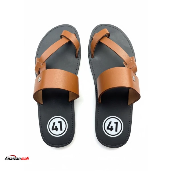 Revenez à l'essentiel avec ces sandales pour hommes au style authentique et chaleureux, créées par Anaizan Mali. Ce modèle se distingue par sa superbe couleur marron camel (cognac) et sa finition lisse qui évoque la noblesse du cuir traditionnel. Le design est pensé pour le confort et la stabilité : une bride fine assure le maintien de l'orteil (entredoigt) tandis qu'une large bande enveloppe le coup-de-pied. Un petit rivet métallique discret sur le côté ajoute une touche de finition soignée. Montées sur une semelle noire robuste avec des surpiqûres apparentes, ces sandales sont parfaites pour une utilisation quotidienne durable. Caractéristiques principales : - Couleur : Marron Camel / Cognac lumineux. - Design : Structure à entredoigt avec bride diagonale et bandeau large pour un maintien sûr. - Matière : Aspect cuir lisse de haute qualité, souple et agréable au toucher. - Détail : Petit rivet argenté décoratif sur la bride principale. - Confort : Semelle noire plate bordée de coutures résistantes. - Taille : Modèle présenté en taille 41 (disponible dans d'autres pointures). - Style : Intemporel, s'associe idéalement avec un jean, un pantalon chino ou une tenue traditionnelle. Une valeur sûre pour l'homme qui apprécie la simplicité et l'élégance naturelle. |