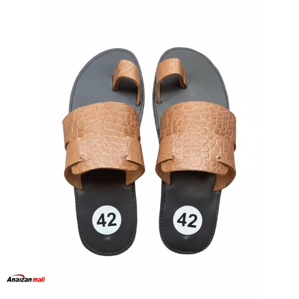 Illuminez votre style avec ces sandales pour hommes au coloris camel éclatant, signées Anaizan Mali. Ce modèle combine modernité et tradition grâce à son empeigne en texture "effet crocodile" d'un marron clair (camel) très tendance. Le design se distingue par une large bride au découpage géométrique original qui enveloppe confortablement le pied, associée à un anneau d'orteil (entredoigt) pour une stabilité irréprochable. La semelle noire contrastante met en valeur la richesse de la texture et de la couleur du cuir. Caractéristiques principales : - Couleur : Camel / Marron clair lumineux, parfait pour l'été. - Matière : Aspect cuir avec texture relief façon crocodile/reptile. - Design : Structure avec entredoigt et bride large ajourée pour un look unique. - Confort : Semelle intérieure noire ergonomique, idéale pour la marche. - Taille : Modèle présenté en taille 44 (disponible dans d'autres pointures). - Style : À porter avec un jean, un short ou une tenue traditionnelle pour une allure soignée. Une pièce de caractère qui apporte une touche d'élégance naturelle à votre vestiaire. |