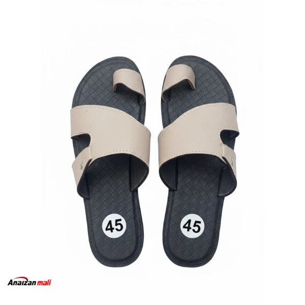 Distinguez-vous avec ces sandales bicolores pour hommes, une création originale de la marque Anaizan Mali. Ce modèle joue sur un contraste élégant entre une large bride couleur beige crème (écru) et une semelle noire profonde. La particularité de cette paire réside dans sa semelle intérieure au motif matelassé (losanges), offrant non seulement un design unique mais aussi une sensation de massage et d'adhérence sous le pied. Dotées d'un anneau d'orteil (entredoigt) et d'une découpe latérale stylisée, ces sandales assurent un maintien parfait et un look résolument contemporain. Caractéristiques principales : - Design Bicolore : Association chic du Beige (empeigne) et du Noir (semelle). - Confort Supérieur : Semelle intérieure noire avec texture relief effet matelassé. - Maintien : Structure avec passant pour orteil et bride large ajourée sur le côté. - Détails : Petit rivet métallique discret sur la bride. - Taille : Modèle présenté en taille 45 (disponible dans d'autres pointures). - Style : Idéal pour apporter une touche de luminosité à une tenue sombre ou décontractée. Une fusion parfaite entre esthétique moderne et confort absolu pour l'homme actif. |